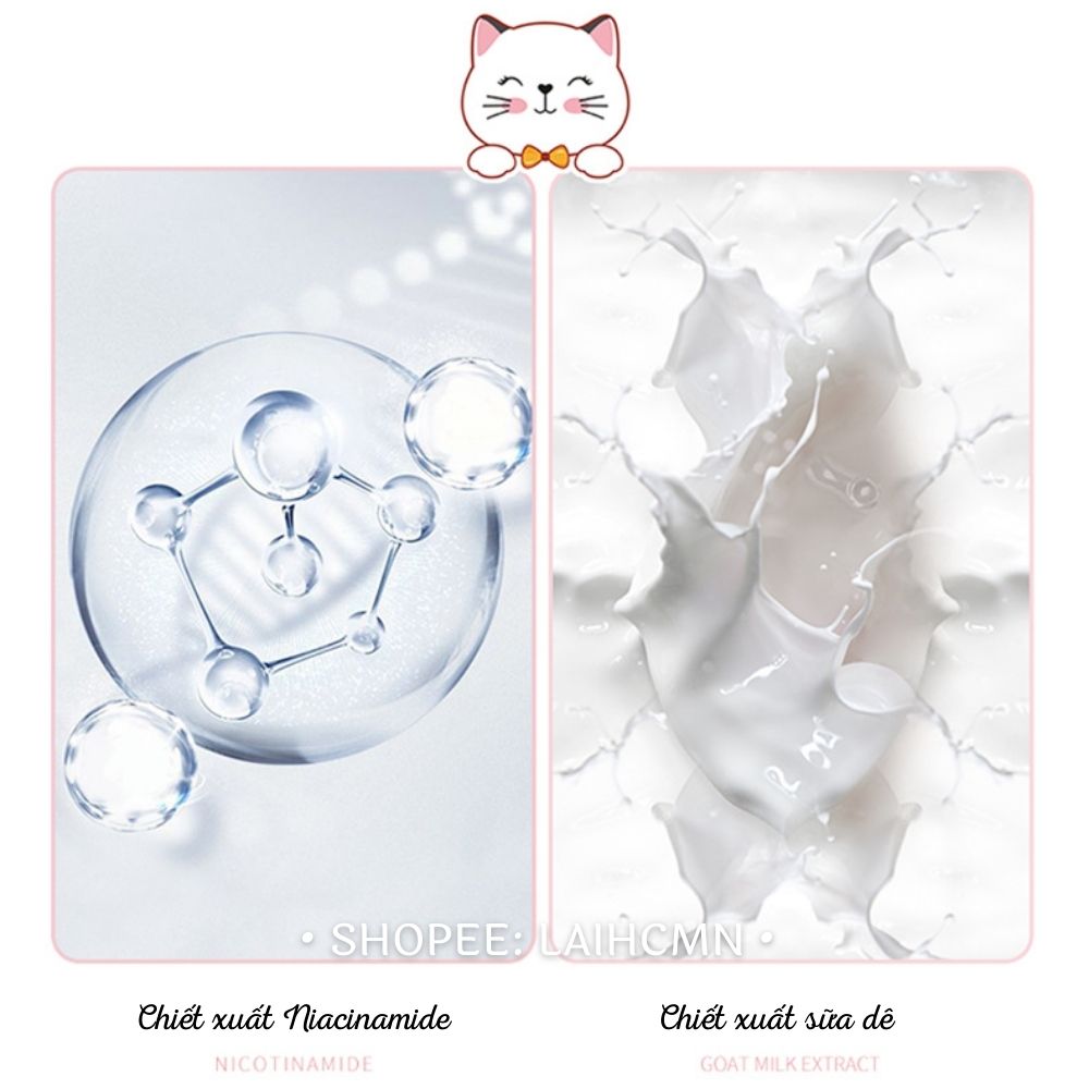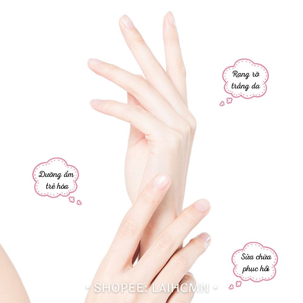 Thành phần chính là Nicotinamide và sữ dê có khả năng giúp ngăn chặn tình trạng mất nước, cung cấp độ ẩm từ đó giúp da tay mềm mịn hơn hẳn. Phù hợp với bàn tay thô ráp, nhăn nheo, đen sạm, thường xuyên tiếp xúc trực tiếp với chất tẩy rửa, tổn thưởng do các yếu tố môi trường như nắng, bụi bẩn.